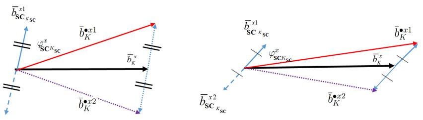 The only change between positions 1 and 2 is the change in the sign of the faulty term. This is due to the polarity Hsc=1 that changes the sign of the cosinus (cos( )= cos( )). The vector diagram for the rank K harmonic associated with a variation of the load is given in Figure 1.9 (in this diagram, we take ∅ 0). To make this diagram, it is considered that the current of the short-circuit part is modified in phase when the load varies, which leads to a change in the phase of the flux density bsc generated by the short circuit and consequently the sensitive harmonics of rank Ksc. The load variation also modifies the flux density coming from the healthy part of the machine because of the increase in the in-line current