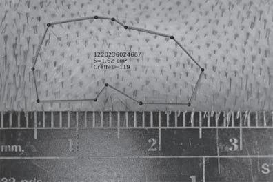Added to this group of instruments is a new measurement tool. With the aid of a French programmer, Alexandre Duvallet, who previously developed software to analyze aerial photographs, the author created the software program Hairmes. In digital photographs that include a calibrating marker, such as a straight ruler or metric ribbon, it calculates information on surface area, FU density, expected donor yield, and incisional density. In addition, it corrects parallax errors caused by the curvature of the scalp. It has also a counter. It’s possible to tag the follicles and to obtain an abstract with the number of FU1, FU2, FU3 per cm2. An example of a complete photographic analysis can be seen in Fig. 1C-1.
