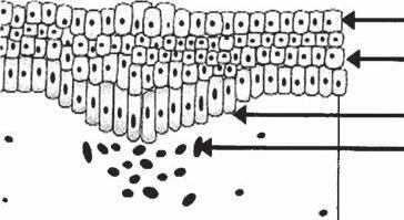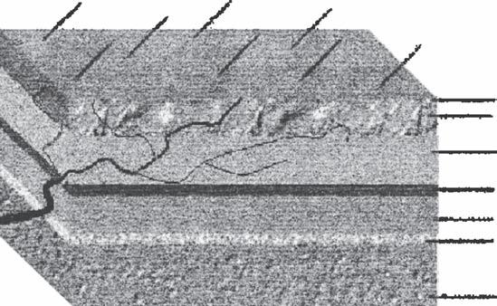 Figure 1B2-6 Schematic of a hair transplantation donor area. Lower deeply shaded area has three scalp layers only. Lightly shaded area above has five layers.