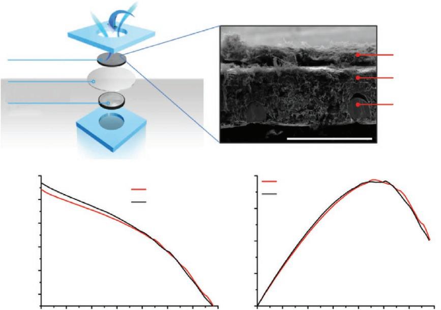 Figure 1.2 (a) ZB, (b) division of air electrode, (c) polarization graph, and (d) power density graph. Reprint with the permission from Reference [14]. Copyright 2013, Elsevier.
