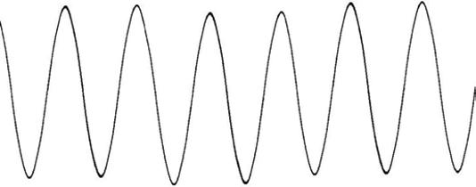 ● The figure shows 5 cycles in 0.001 seconds, which means the frequency is 5000 cycles per second or f = 5000 Hz, (where Hz, Hertz is the unit for frequency) which happens to be the middle of our hearing range.