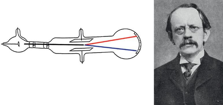 Figure 1.9 Joseph John Thomson and his cathode ray tube. Source: Wikipedia, https://en.wikipedia. org/wiki/J._J._Thomson#/media/File:JJ_Thomson_Cathode_Ray_2.png (left); Wikipedia, https://en. wikipedia.org/wiki/J._J._Thomson#/media/File:J.J_Thomson.jpg (right).
