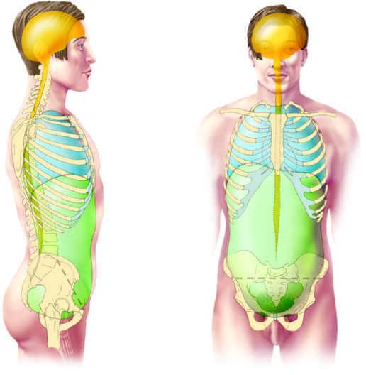 Many of the body’s organs are found within body cavities. The cranial cavity contains the brain, and it is continuous with the vertebral (vertebra = back) canal that contains the spinal cord.