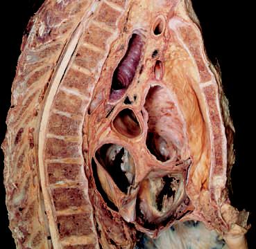 2 Locate the mediastinum (meed-ee-uh-STINE-um) on a torso model or on Figure 2.1. Identify the organs located within the mediastinum. ■
