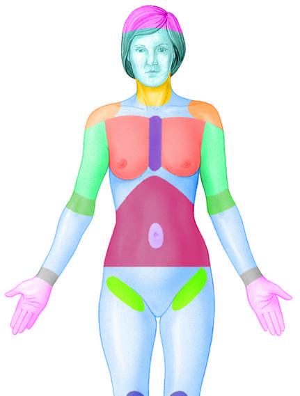 2 Using a marker, draw life-size outlines of all superficial organs in the appropriate place on the paper or plastic torso. ■