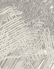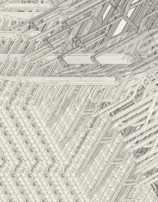 Developments in architectural education were folded into architectural practice along with automation in the construction industry. Large software companies have disseminated standardised techniques for building design and construction based on construction industry products and standards. CATIA, originally developed by Dassault Systèmes for the aerospace industry, was rewritten by Gehry Technologies for Microsoft Windows and enabled contractors to compete in the bidding of complex projects. Building information modelling (BIM) streamlined design and construction processes with automated features and libraries, and powerful BIM tools like Autodesk’s Revit became industry standards. Detailing became an automated function of design software rather than a de ning feature of architectural design. Broadly speaking, the results have been a sameness in work implementing the same software. Perhaps more signi cantly, digital architecture has become detached from its materiality and its material consequences in the world. The digital has exhausted its own development and now needs the discipline of architecture as an active partner to develop new material strategies and move beyond quantitative frameworks.
