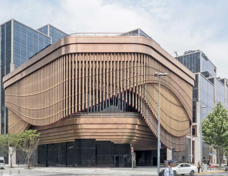Recycled brick was selected for the new facade for two primary reasons. Firstly, during the demolition of the Longhua airport facilities, the bricks used in the former buildings were salvaged but unmarked for future use. Reclaiming a portion of these bricks for the new facade was a straightforward way to maintain these historical elements. Moreover, recycled bricks have the ability to harmonise new and old buildings. With the remaining architecture on site largely built of brick, it was the obvious choice of material for the new facade.