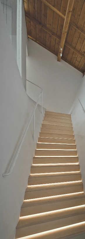 The old roof structure was replaced with a lighter, more efficient, and warmer tensioned wooden roof. This new roof was partially raised so as to obtain a mezzanine rest space without affecting the spatial relationships throughout the surrounding park.