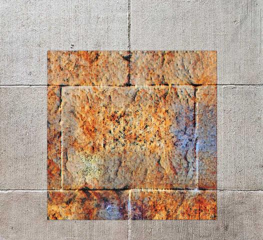 below: Augmented-reality tracking panel. The vinyl printed sticker improves the image tracking performance of the facade for apps utilising ARCore, a Google plugin for developing augmented-reality apps on Android platforms. Adversarial neural networks were trained to transform photographs of 0.5-metre poorly performing building surfaces into high-performing trackers.