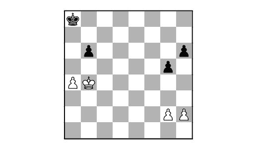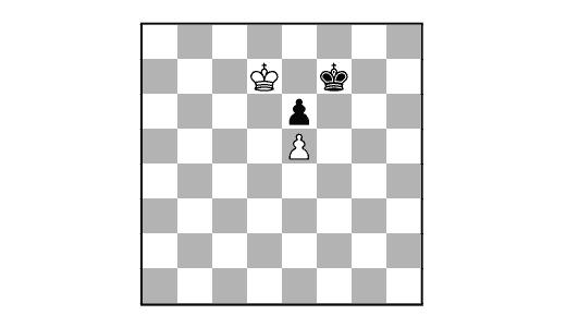 White/Black to play HereWhitewinsbyzugzwang.IfBlackistoplay,hemustmovehisking, allowingWhitetotakethepawn,withawinafter1...Kf82Kxe6Ke83Kf6 Kf84e6Ke85e7.However,theresultdoesnotdependonwhoistomove. It’sstillawinwithWhitetoplay,ashecancontinue1Kd6andBlackmust stillsurrenderthepawn.
