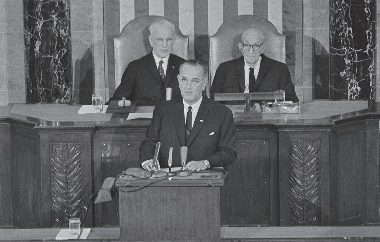 Figure 1.1 President Lyndon Johnson’s First Address to Congress on November 27, 1963 with U.S. House Speaker John McCormack and Senate President pro tem Carl Hayden (U.S. House Historian’s Office)