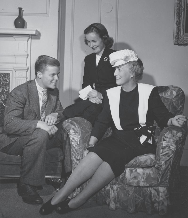 John, his sister, and his mother. The young man’s fixed smile seems aimed at his mother’s hat.