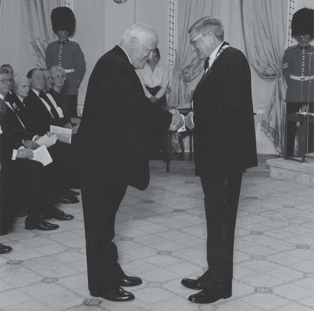 Receiving the Order of Canada from Governor-General Roméo Leblanc.