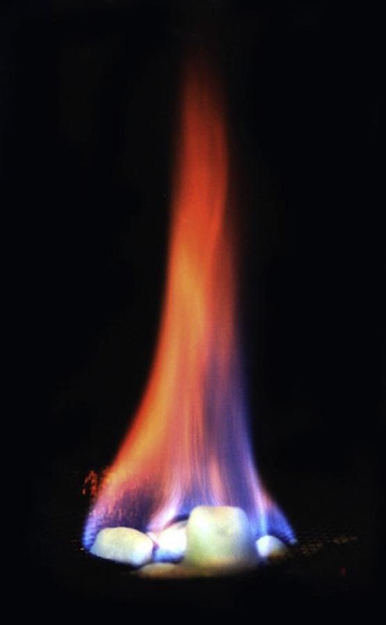 Oneoftheiconicimagesofahydrateisthe “iceon fire ” burningofa hydrate.Becausethehydrateiscomposedofbothhost(water)andguest,as thehydratemeltstheguestisreleased.Withamethanehydrateoranatural gashydrate,sufficienthydrocarbonisreleasedsuchthatitcanbeliton fire. Fig.1.1 isaphotographshowingtheiceon fire.Itisimportanttonotethat notallhydratescanbeignited.Onlythosethatcontainasuf ficientamount ofhydrocarboncanbeseton fire.Forexample,tryasyoumayyouwill neverbeabletoigniteacarbondioxidehydrate CO2 doesnotburn.