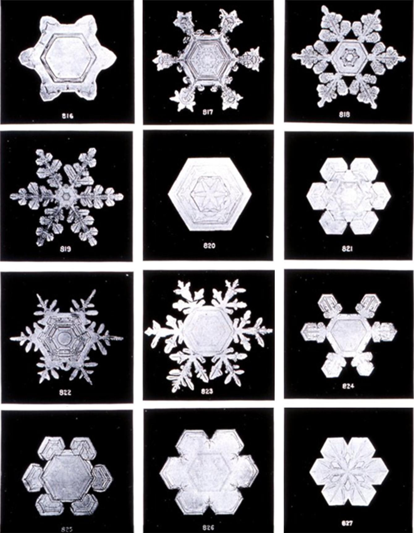 Figure1.4 Microphotographsofssnowflakes. (CourtesyoftheNationalOceanicand AtmosphericAdministration(NOAA),Washington,DC http://www.photolib.noaa.gov OriginalphotographsbyWilsonBentley(1865 1931),whichwerenotcopyright.)