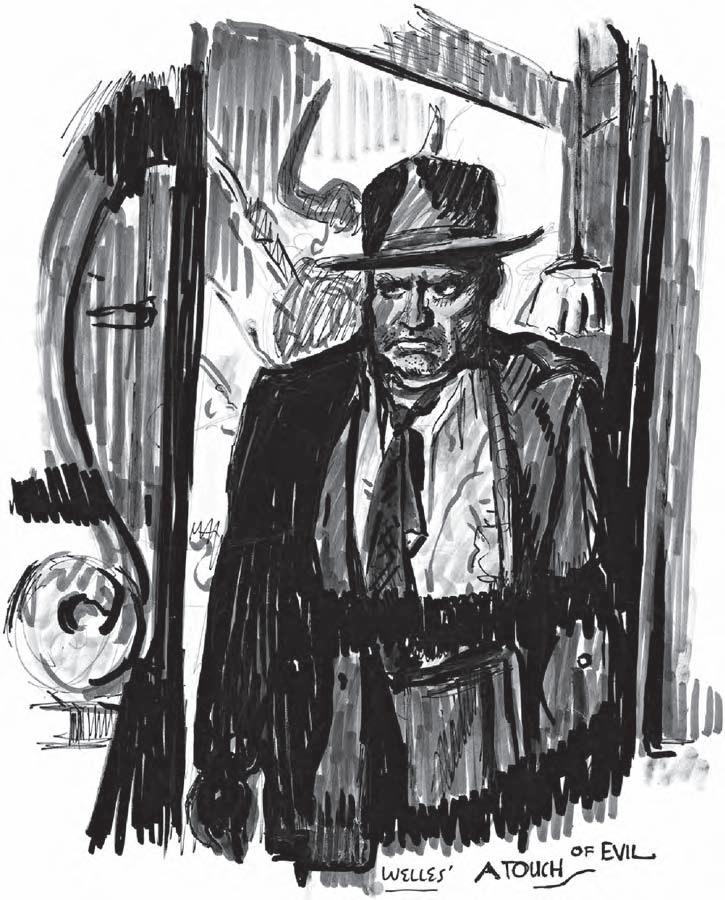 Figure 2-4 Hart sketch of Orson Welles come-back crime drama A Touch of Evil (1958).