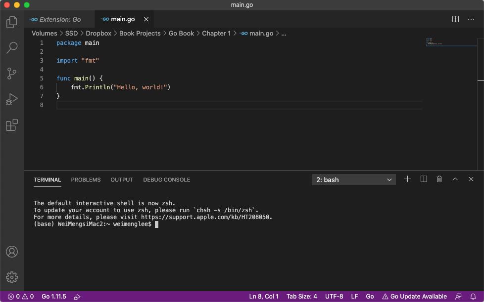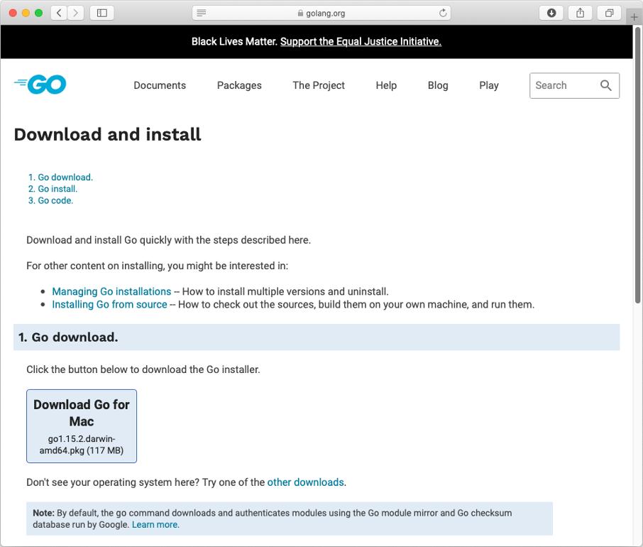 You should see the version of Go installed on your system: go version go1.15.8 darwin/amd64