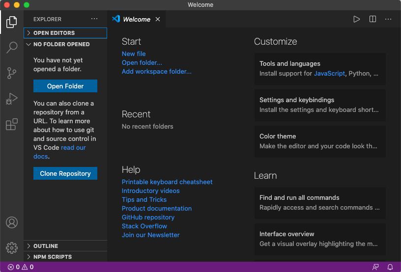 FIGURE 1-2: Launching Visual Studio Code for the first time.