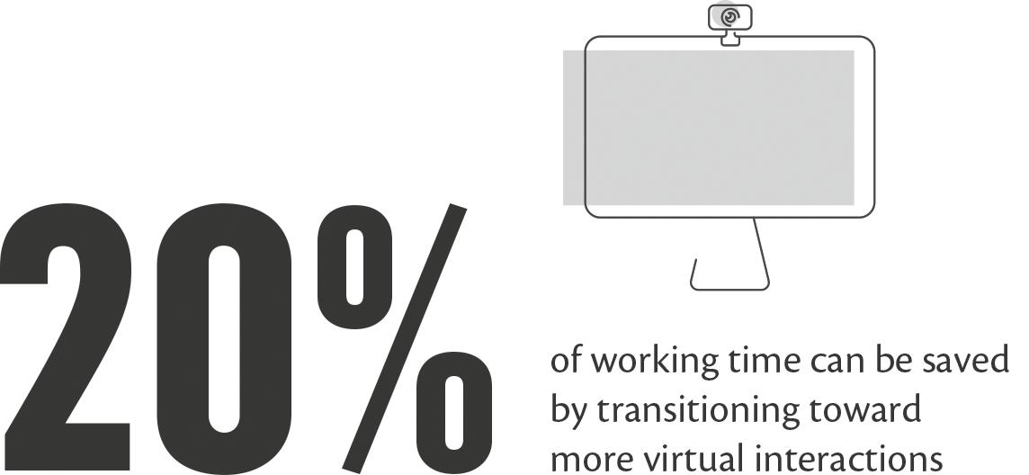 having to work more hours. The time that you used to spend travelling could now be spent holding additional meetings. The second is to use this additional time to spend more time with your family and friends, or doing hobbies that you enjoy. Both options will help give you a better balance between your work and personal lives. In our recent study of more than 300 global commercial managers, respondents self-reported that transitioning toward more virtual interactions allowed them to save up to 20% of their working time.