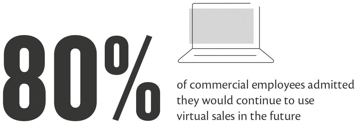 risk that you have to self-quarantine on your return home. And even when national or regional border restrictions are lifted, many sales organisations believe that their customers will remain reluctant to welcome external partners on site in the long run—making effective virtual customer engagement a precondition to effectively serve your customer base. In our recent study of over 300 global commercial employees, 80% admitted that they would continue to use virtual as a means to connect with customers and prospects in the future.