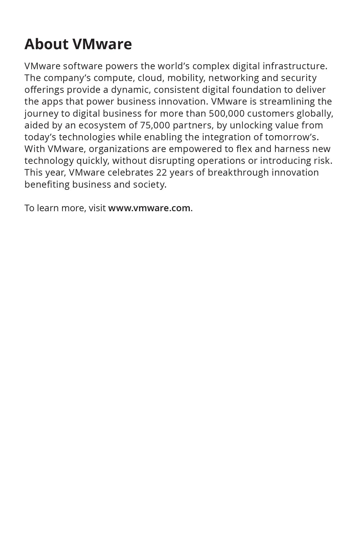 For a deep dive into the concept of micro-segmentation, download a copy of Micro-segmentation For Dummies (Wiley) at www.vmware. com/go/MicrosegmentationForDummies.com. This tightly written book, sponsored by VMware, provides a close-up look at the concepts, technologies, and benefits of micro-segmentation with the VMware NSX family.