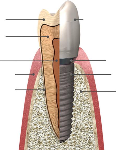 3.2 Comparison of a natural tooth root and an artificial (implant) tooth root (Source: Courtesy of Implant Direct).