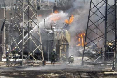 Figure1.3 Failedtransformeronfire–ThessalonikiGreece.Source:Konstantinos Stampoulis/Firefighters.gr/ WikimediaCommons/CCBY-SA3.0GR.