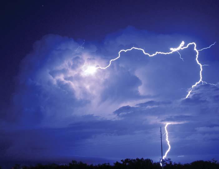 Thepowersystemisdesignedtobalanceperformanceandminimizethecostofenergydelivery. Theplanning,design,andimplementationofapowersystemisabalanceofinitialcapitalcosts andongoingmaintenancecostswiththepotentialcostimpactofpowersystemequipmentfailure. Powersystemsareexposedandsubjectedtoenvironmentalelementssuchasrain,snow,ice, lightning(Figure1.2),storms,andothersuchenvironmentalrisks.Theseriskscause,power system’sprimaryequipmentcomponentstomakeunwantedcontactwithothercomponents, referredtoasfaultswhichresultinfaultcurrentsintheorderof10–100timesnormalloadcurrents. Transmissionlineshavethehighestriskofenvironmentalelementsduetotheirincreasednatural exposuretotheenvironment.