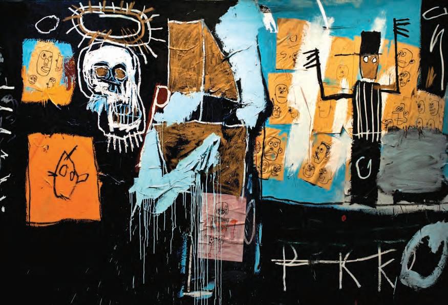 Jean-Michel Basquiat , Slave Auction , 1982. Collage, oil pastel, and acrylic paint on canvas, 6’ × 10’. Centre Pompidou, Paris, France.