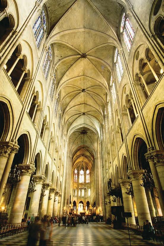 Looking up into the nave vaults of Notre Dame Cathedral, Paris, France, begun 1163, modified 1225–1250.