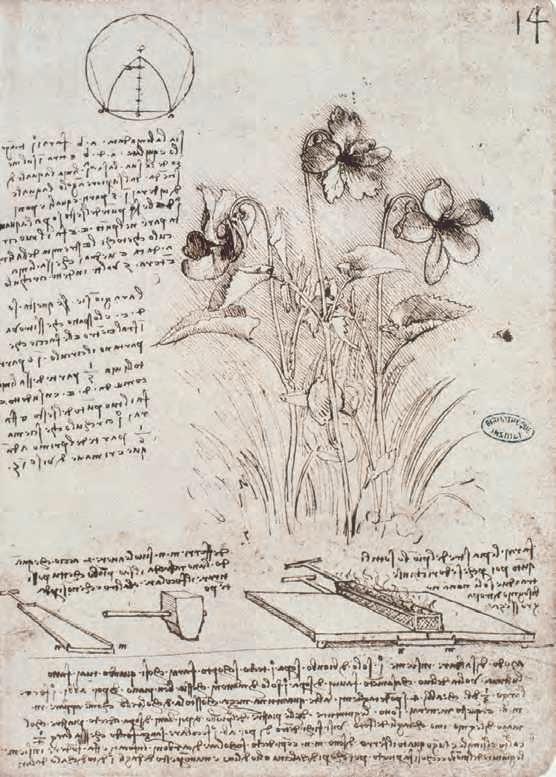 LEONARDO DA VINCI , Drawing of Flowers and Diagrams . Study from the notebooks, c. 1490–1519. Black chalk and ink, 9 1 ⁄ 8 " × 6 1 ⁄ 2 ". Institut de France.