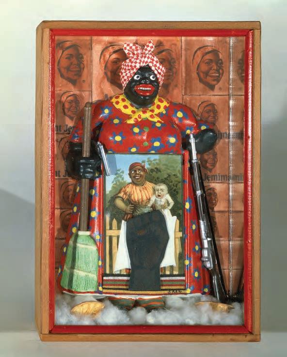 BETYE SAAR , The Liberation of Aunt Jemima , 1972. Mixed media, 11 3 4 " × 2 3 ⁄ 4 ". University Art Museum, University of California at Berkeley, California.