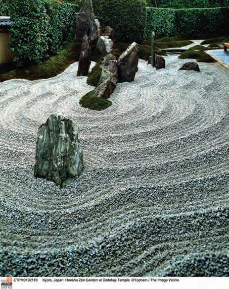 Ryoanji Zen Temple , Japanese Sand Garden, Kyoto, c. 1525. Stones, bare white sand.