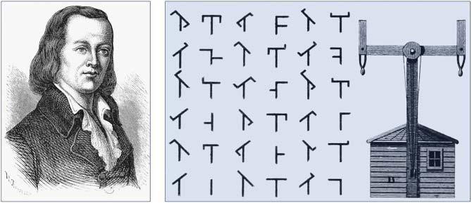Figure1.1: ClaudeChappe,hiscodingscheme,andthemechanicaldeviceusedformakingopticaltelegraphs. Source:Agrawal[3].