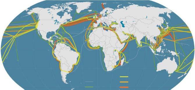 Figure1.5: Internationalunderseanetworkoffiber-opticcommunicationsystemsaround2016.