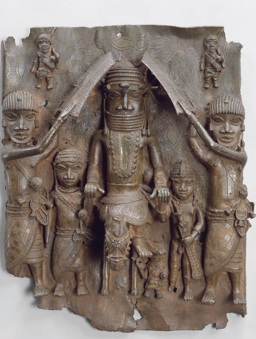 Like the Japanese painter (FIG. I-3),the African sculptor who depicted the Benin King on horseback with his attendants (FIG. I-1) did not employ any ofthe Western conventions seen in the Rubens painting (FIG. I-4).Although the Rubens painting and the Benin plaque are ofapproximately the same date,the African figures are all in the foreground,stand (or sit) in upright positions,and face the viewer directly.The sculptor represented nothing at an angle.The viewer even looks at the horse head-on and sees only its two front legs and head.Once gain,neither approach to picture-making is the “correct”manner.The artists’strikingly divergent styles reflect the significantly different societies of17th-century Europe and Africa.