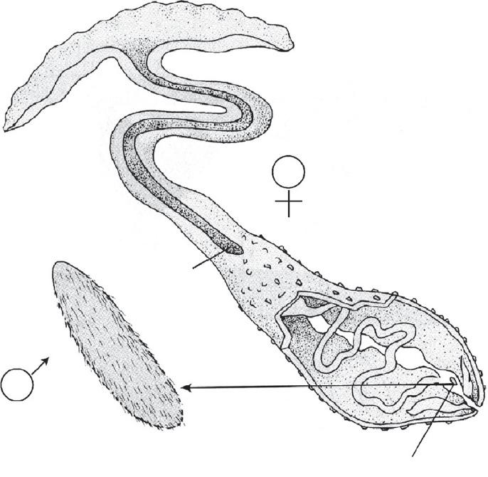 Figure1.2 Sexesin Bonellia.Thefemalehasawalnut-sizedbodythatisusuallyburiedinthemudwitha protrudingproboscis.Themaleisaciliatedmicroorganismthatlivesinsidethefemale. Source: Adapted fromFigure3.18from Genetics,3rdEdition,byPeterJ.Russell.Copyright©1992byPeterJ.Russell. ReprintedbypermissionofPearsonEducation,Inc.