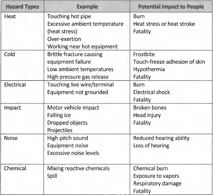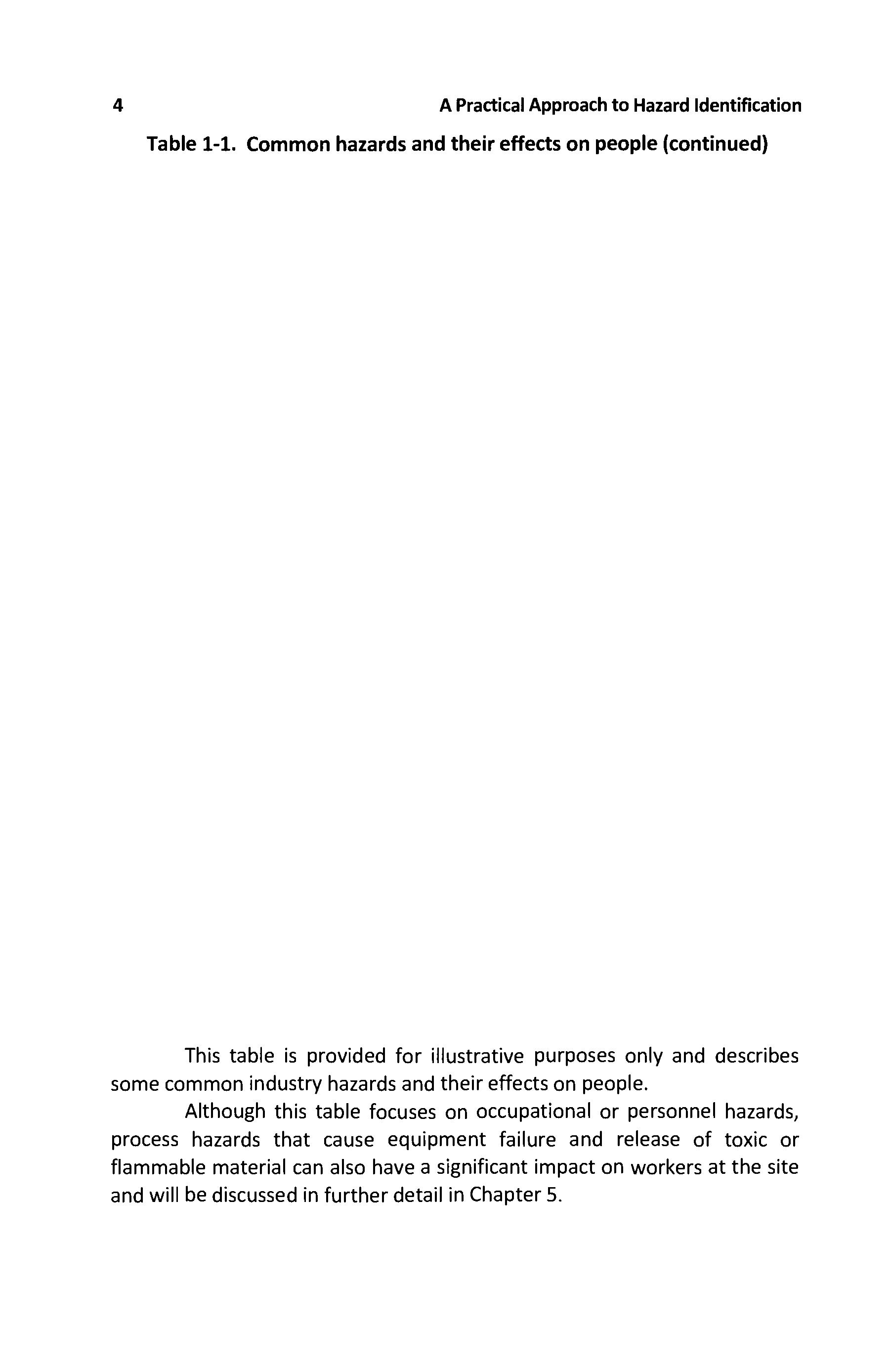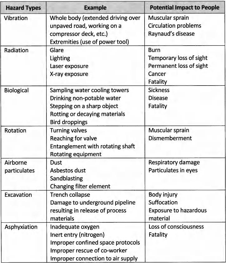 Common workplace hazards and thei r effects on people are summarized in Table 1-1