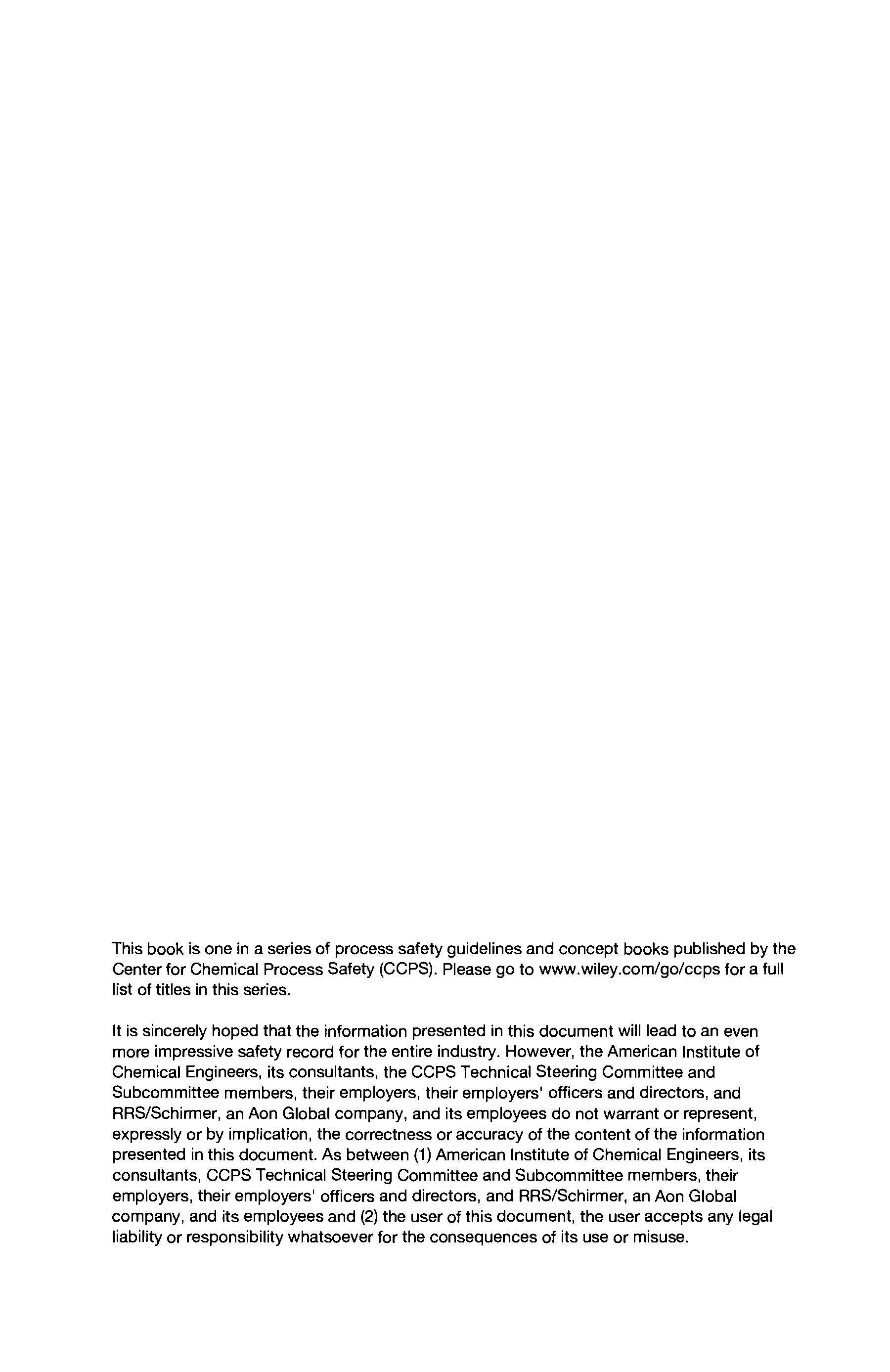 A Joint Publication of the Center for Chemical Process Safety of the American Institute of Chemical Engineers and John Wiley & Sons, Inc.