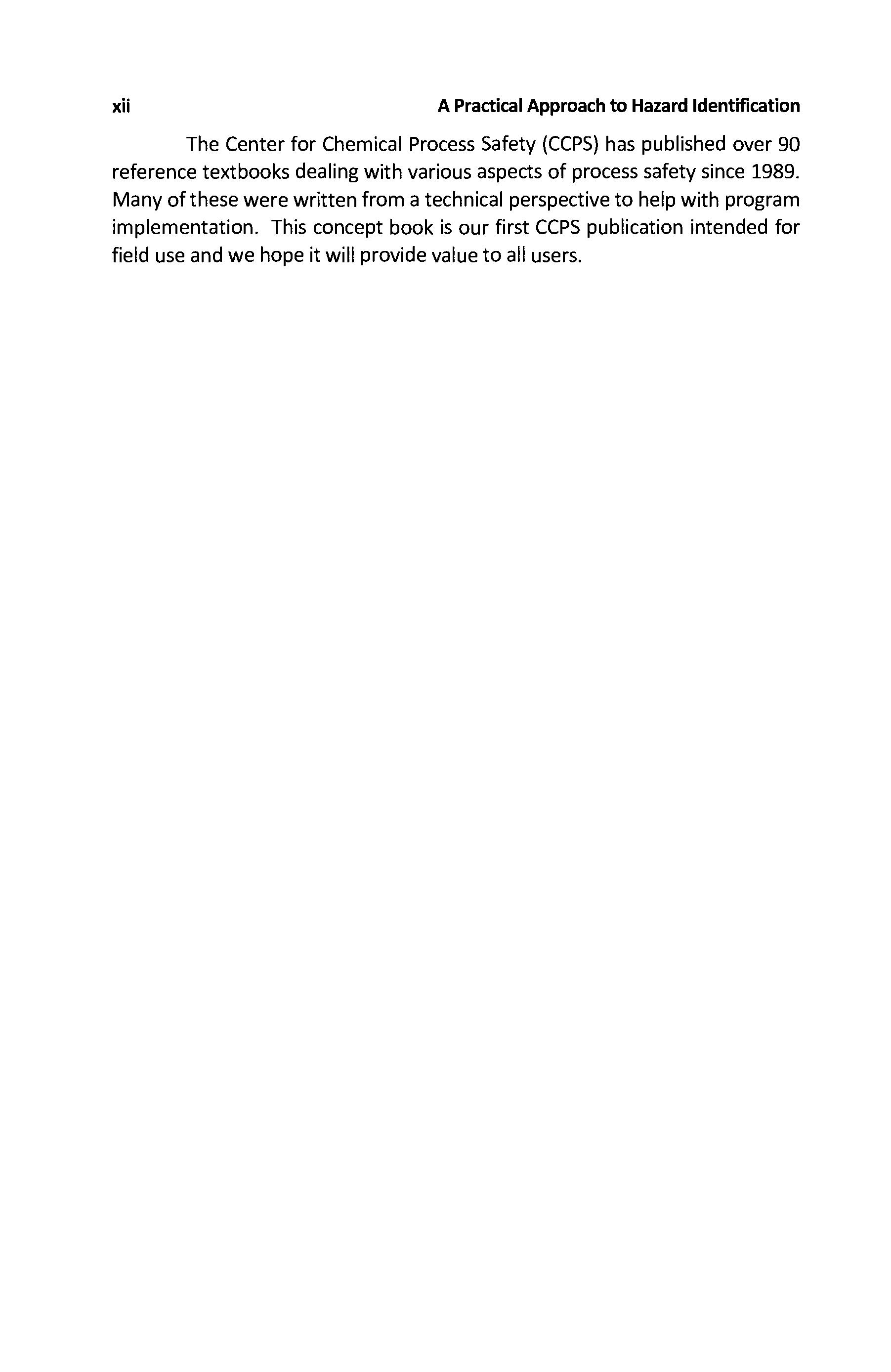While other books cover physical or occupational hazards, this book extends hazard recognition practices and techniques to include identification and mitigation of process hazards. One way in which process hazards differ from physical or occupational hazards is that process hazards have the potential to impact more people and the surrounding community. Process hazards are frequently the result of equipment or process systems operating outside their design intent