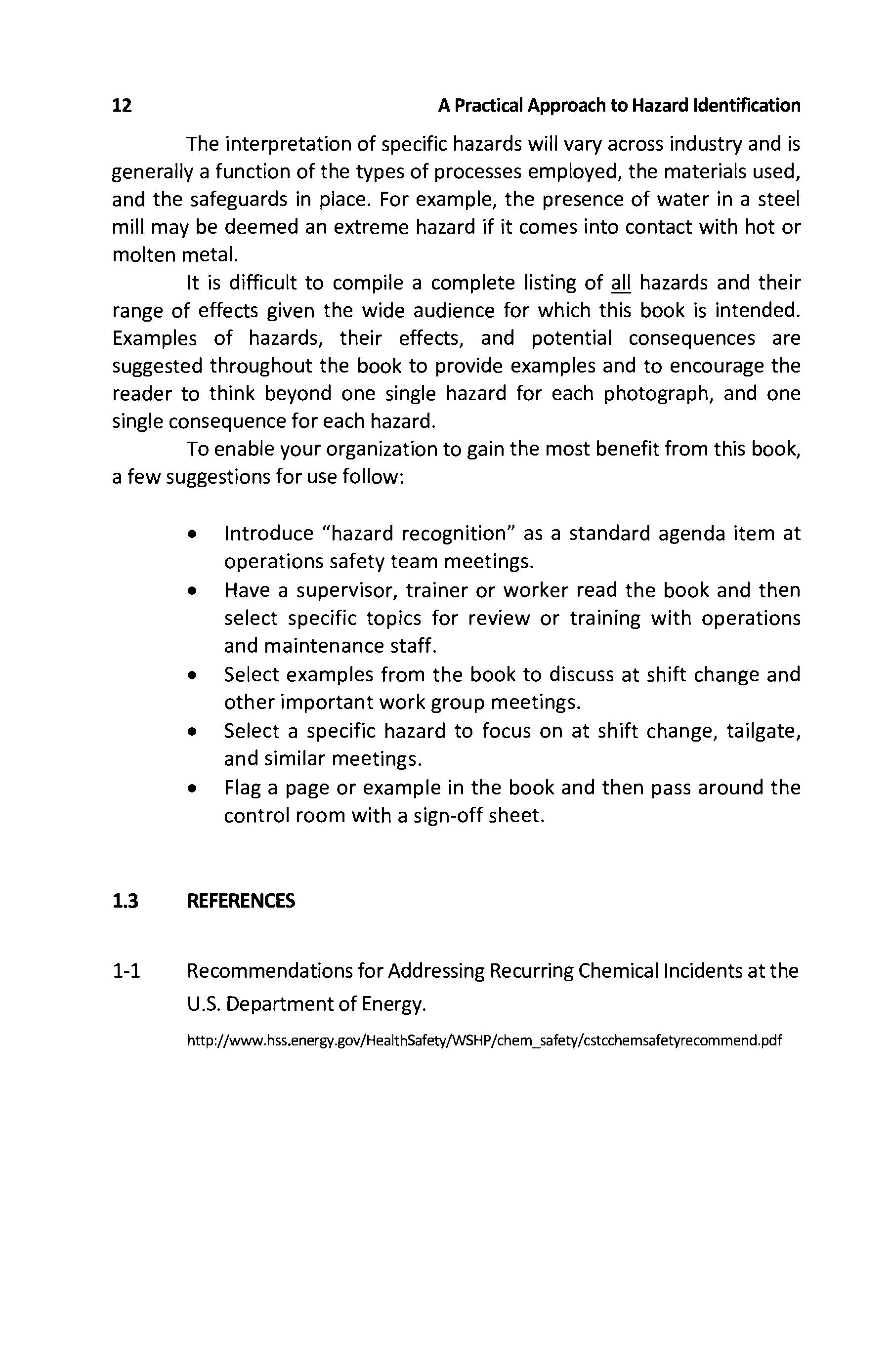• Have a supervisor, trainer or worker read the book and then select specific topics for review or training with operations and maintenance staff