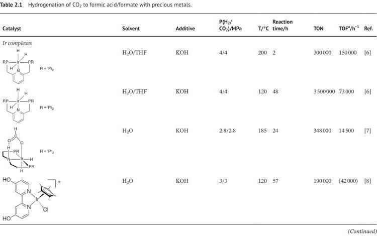 2 Homogeneously Catalyzed CO2 Hydrogenation to Formic Acid/Formate by Using Precious Metal Catalysts 13