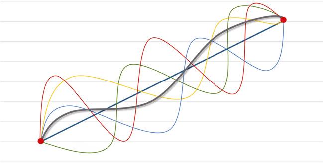Starting from a high-level conceptual framework, a smoother path can be attained by investing across a wide range of return streams that are different from one another. By different, I mean that while they all go up over time, their ups and downs generally do not coincide. As a result, a total portfolio that is made up of these fluctuating constituents should exhibit less variability over time than any single one of them. This is the core insight of Modern Portfolio Theory, which posits that a portfolio made up of diverse components can exhibit less risk for a given level of return than a less diversified mix. The bold line in Figure 1.1 illustrates the conceptual idea of a smoother path – one that takes less risk to earn a similar return.