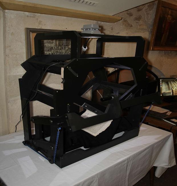 Figure 1.7. Book scanner (Wikimedia France). For a color version of this figure, see www.iste.co.uk/mkadmi/archives.zip