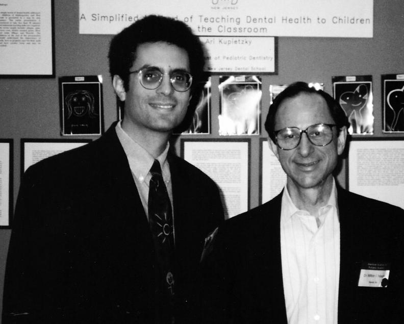 The editor, Dr. Ari Kupietzky (left) and Professor Milton Houpt (right) presenting “A simplified method of teaching dental health to children in the classroom”. American Academy of Pediatric Dentistry, Annual Session, Kansas City, Missouri, 1993.