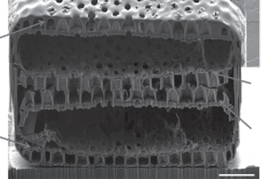 Figure 1.6 A cross-section at the center of Coscinodiscus sp. cell collected and treated while binary fission process was in progress, fabricated and captured by FIB-SEM. Reproduced from Xing et al. [1.42] under a Creative Commons Attribution 4.0 International license.