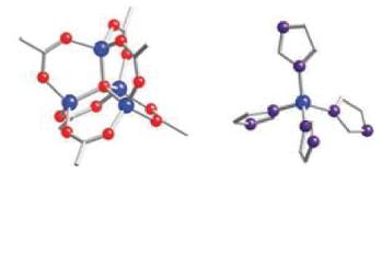 Figure 5.9 (a) 3D structure of [Gd3Cu12I12(IN)9(DMF)4]n. nDMF. (structure I) (b) [Cu12I12] cluster. (c) Tri-nuclear [Gd3(IN)9(DMF)4] units (top). (a) 3D structure of [Gd4Cu4I3(CO3)2(IN)9(HIN)0.5(DMF) (H2O)]n.nDMF.nH2O. (structure I) (b) [Cu3I2] cluster. (c) Gd4(CO3)2 chains (bottom).