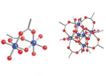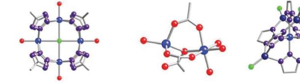 Figure 1.2 Some examples of metal nodes, organic linkers, and MOFs (definition of atom types: blue: metal; red: oxygen; purple: nitrogen; gray: carbon; and green: chlorine). 3