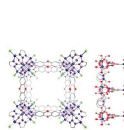 Figure 1.2 (Continued) Some examples of metal nodes, organic linkers, and MOFs (definition of atom types: blue: metal; red: oxygen; purple: nitrogen; gray: carbon; and green: chlorine).