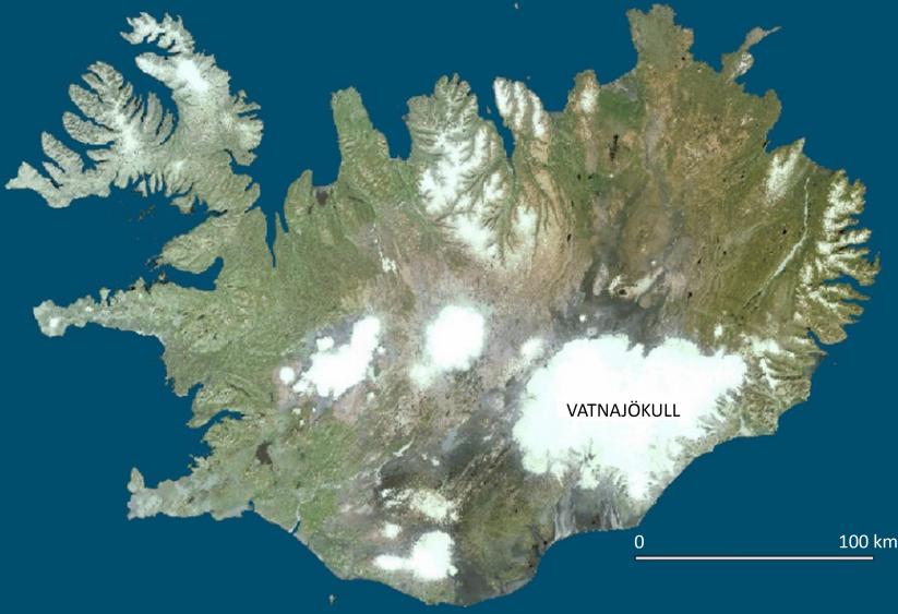 Figure I.1. Iceland from Space (document Geographical Institute of Iceland/Landmælingar Ísland [LMIs])